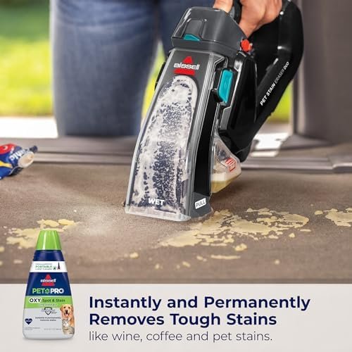 Bissell PET PRO OXY Spot & Stain Formula delivers powerful, pet-safe stain and odor removal for carpets and upholstery—plus, every purchase supports BISSELL’s mission to help save homeless pets. Refresh your home with this effective portable carpet cleaner solution from Bissell.